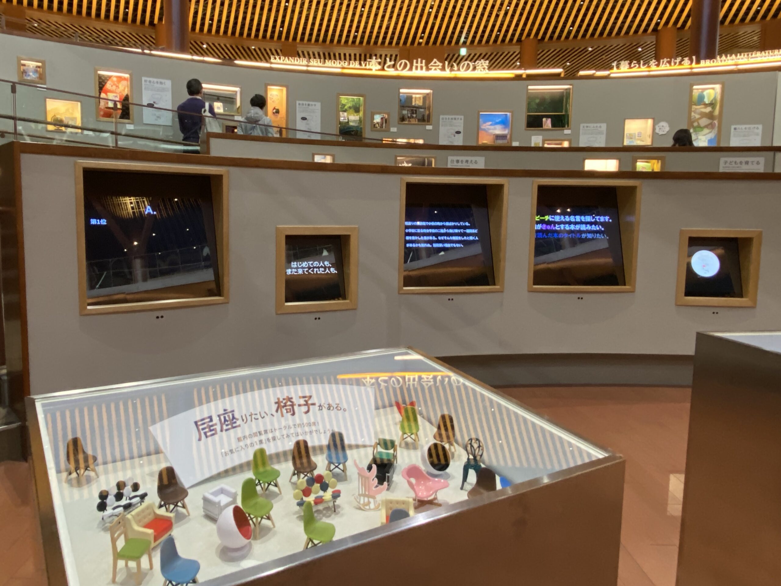 「文学に触れる」「仕事を考える」など、12のテーマに沿った本棚の回廊。特に読みたい本が決まっていないとき、勉強や作業の気分転換をしたいときにおすすめのコーナー。先ほどの「本との出会いの窓」もこのテーマのひとつ。通路を歩きながら本の表紙を眺めていると、町の路地裏を探索するようなワクワクした気持ちになります。