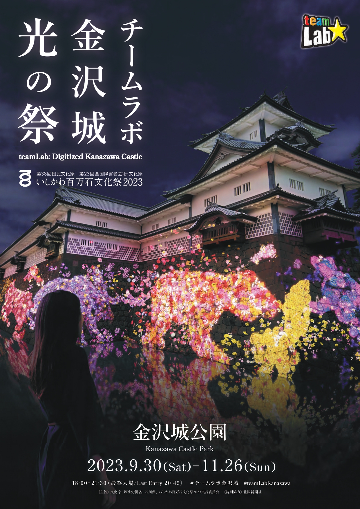 teamLab: Digitized Kanazawa Castle will be held from September 30th to November 26th in 2023. Digital technology by teamLab will transform the buildings, stone walls, and trees of Kanazawa Castle Park into an art space. This event allows visitors to enjoy interactive digital art at a historic site in the center of Kanazawa.