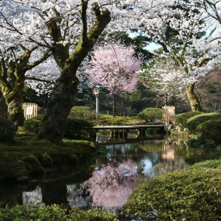 From JR Kanazawa station, it takes about 16 to 20 minutes by the Kanazawa Loop Bus or a local bus. The bus stop where you get off depends on which gate you enter the park from.