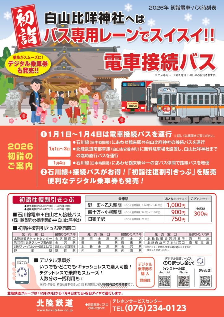 2026年初詣電車・バス運行と初詣往復割引きっぷについて(北陸鉄道)