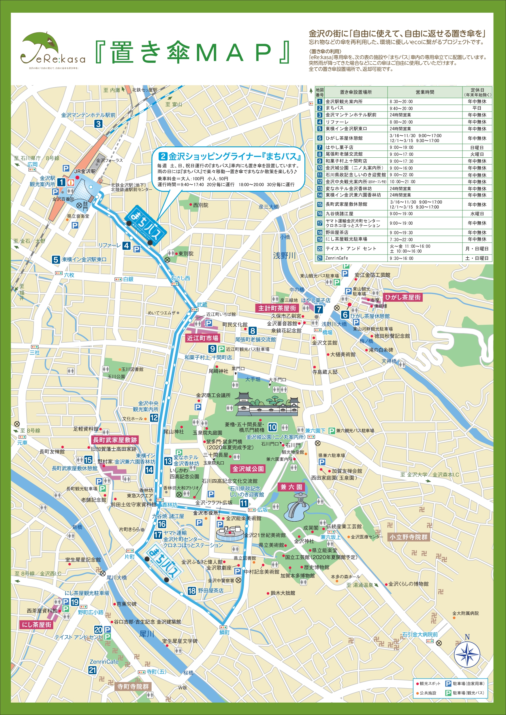 たとえばひがし茶屋街の近くで借りた傘を、お帰りの際に駅の観光案内所で返却するといった使い方も可能。
